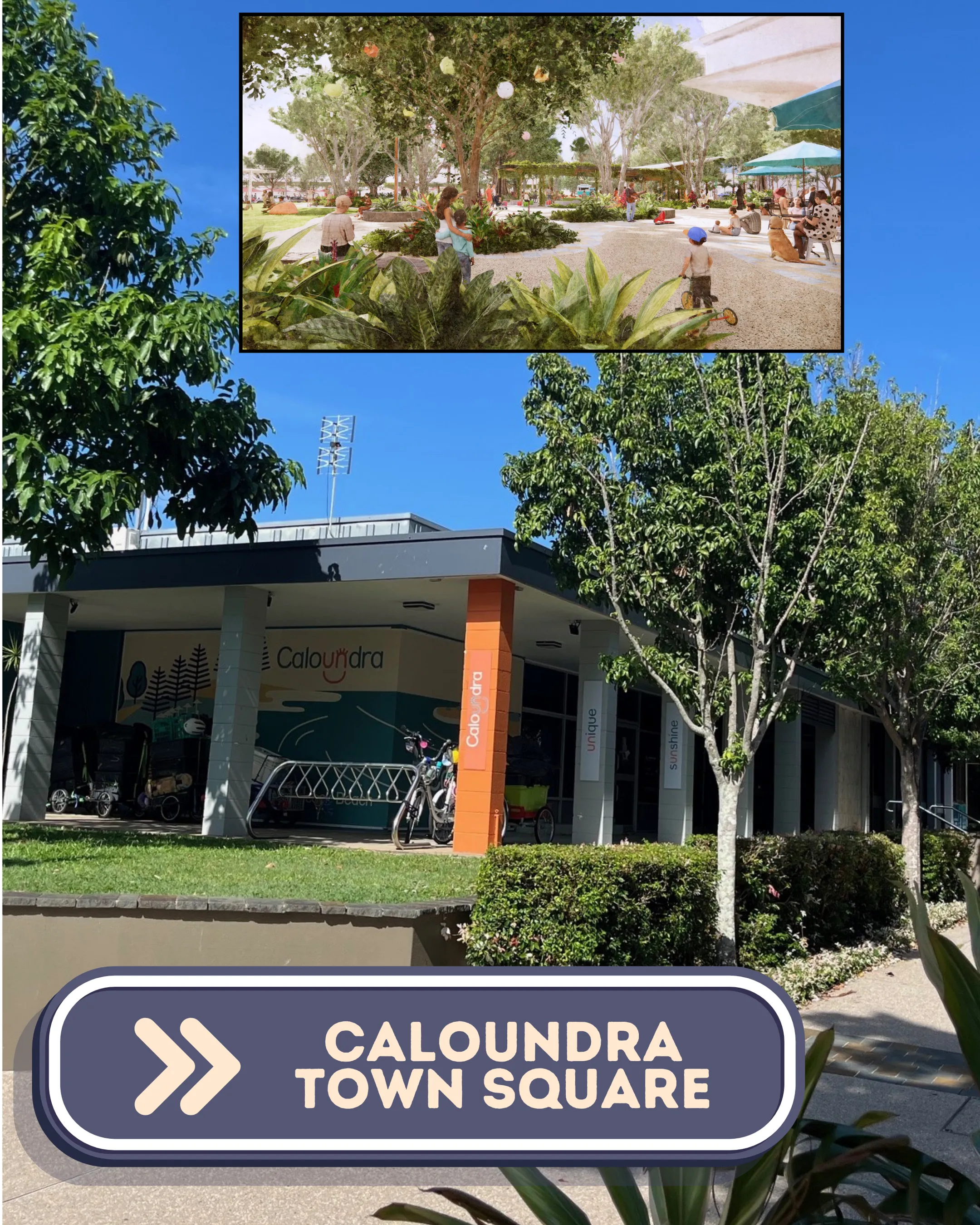 The new public space precinct will link The Events Centre, new Library+, town square and Caloundra Regional Gallery through to Bulcock Street and the beach.