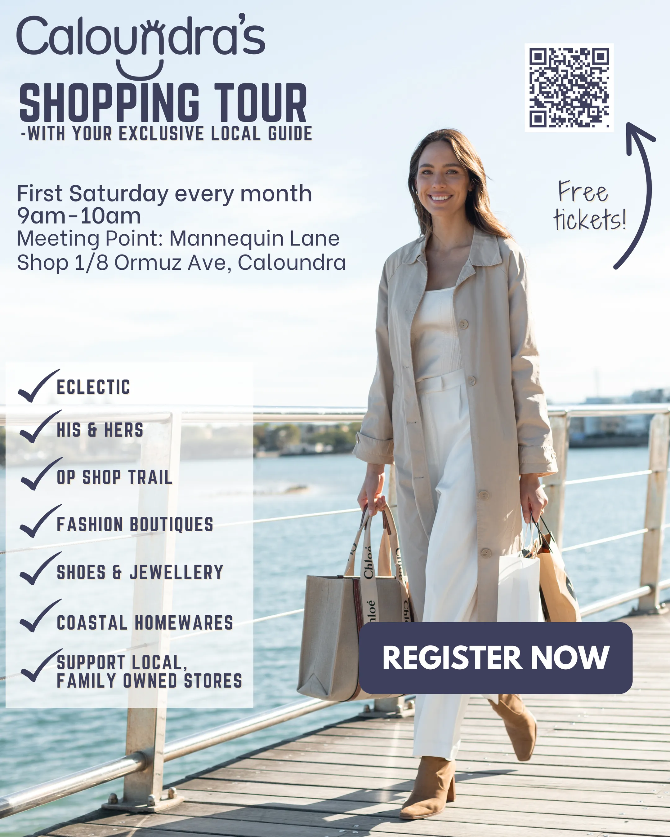 Caloundra Shopping Tours - a completely free, fabulously fun guided walk through the heart of Caloundra’s CBD, hosted by the very retailers who make this coastal town so special.