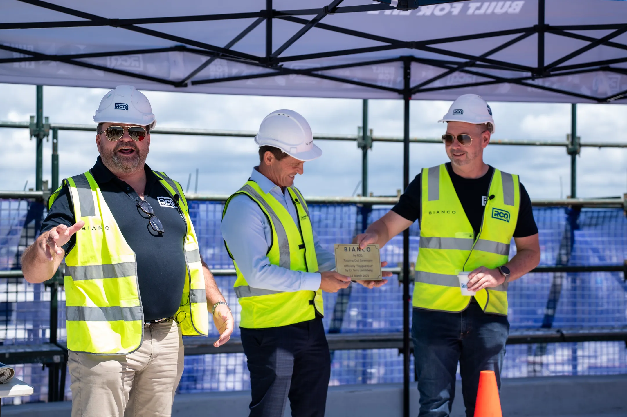 An exciting milestone has been reached for RCQ’s landmark development, BIANCO, as the project officially celebrated its roof topping. The event was presided over by Councillor Terry Landsberg, marking a significant step in the transformation of Caloundra’s CBD.
